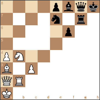 The board is still a normal 8x8 board, but there are only 27 open squares. The other 37 squares should be covered up by checkers or Go pieces or anything else to denote that they are inaccessible. The rules are the same as chess, with a few exceptions: