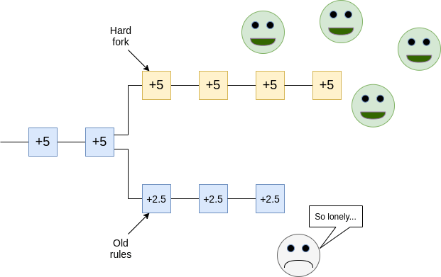 - A version of the chain that does not accept the rules that you