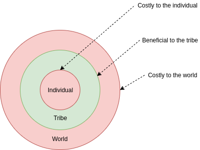 Going from two people to three introduces the possibility of harms from unbalanced coordination: it's not just "the individual versus the group", it's "the individual versus the group versus the world".