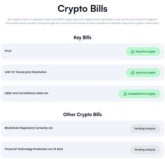 The "key bills" that StandWithCrypto tracks. There is no attempt made whatsoever to judge politicians on freedoms related to cryptography and technology that go beyond cryptocurrency.