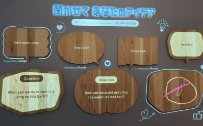 What particularly strikes me about the exhibits is the way in which they invite people to actively learn and participate. The informational exhibits all strive to present information in a way that makes it tangible and easier for people to understand important details, and consequences, of each problem. A section on overfishing features the complaint "I like sushi ... but we may not be able to eat sushi casually in the future, right?". At least two of the exhibits end with an interactive section, which asks a question related to the content and invites people to provide their own answers. An exhibit on solving the Earth's resource problems takes the form of a game.